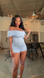Who doesn't love a romper? This baby blue sweater romper is the cutest thing ever especially paired with cute boots. Spaghetti straps and off-shoulder collar with buckles.. Simple but stylish!